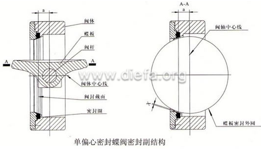 單偏心密封碟閥的密封原理圖