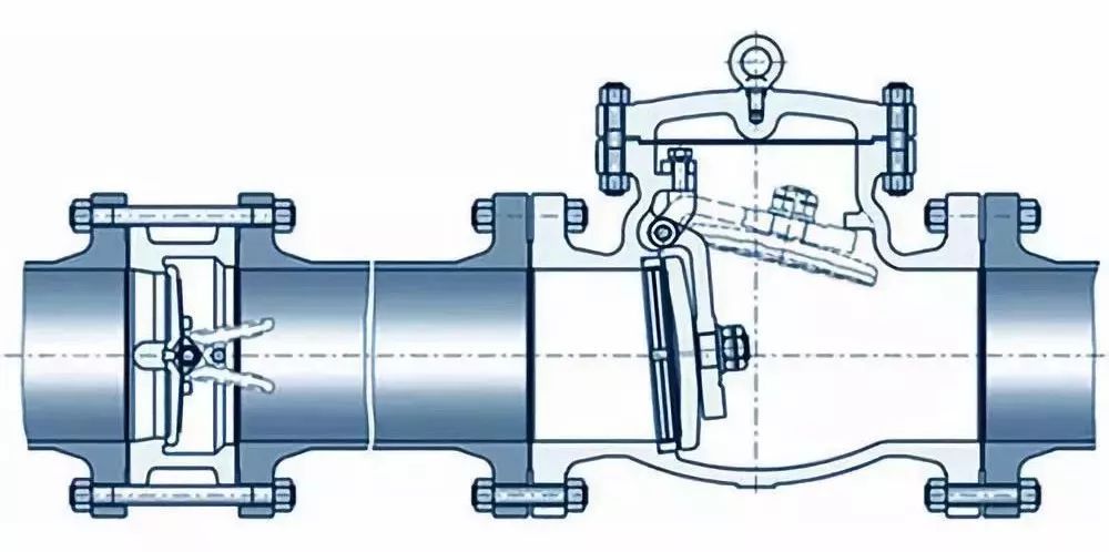 止回閥必須安裝在泵的出口、出口控制閥之前的位置,以便檢修止回閥。一般泵的出口第一道是軟連接(減震器),接下來是止回閥,再接下來是隔斷閥(如蝶閥、閘閥、截止閥等) 。