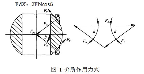 由于閥座和殼體不是粘接密封而是壓縮密封,因此出口端閥座軸向總密封力FMZ應由閥座軸向動密封力FdX和靜密封力FJX合成。文獻[ 1 ]推薦FMZ :FNC0,其值得推敲,FN是FMZ分力,應小于FMZ,其次未納人靜密封力,不適合壓縮密封的靜密封結構。由此計算的啟閉力矩也與測量值不符。忽略空心球重力影響,FdX在動密封面上分解為法向力FN和摩擦力FT。其中FT為較小量,省略不計,則FdX分解為一對法向力(圖1),顯然