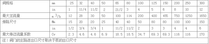 其它旁路尺寸可按要求制作;最大的旁路流量取決于最大的Kv值